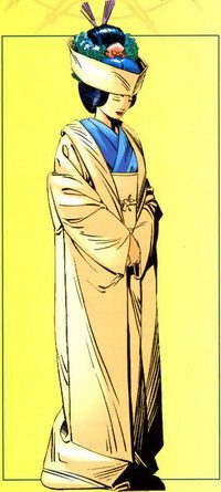 - Родственники: Шинген Харада (отец, погиб), Нобуру-Хидеки (муж, погиб), Кенуйчио Харада (Серебряный Самурай, сводный брат), Широ Яшида (Sunfire, двоюродный брат), Сабуро Яшида (двоюродный брат, погиб), Томо Яшида (cousin, погиб), Лея Яшида (Sunpyre, двоюродный сестра, погиб), Амико (приемная дочь)